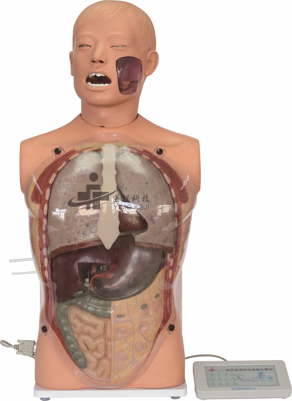 ●模型为成人上半身,一侧颊部设有透明示教区域