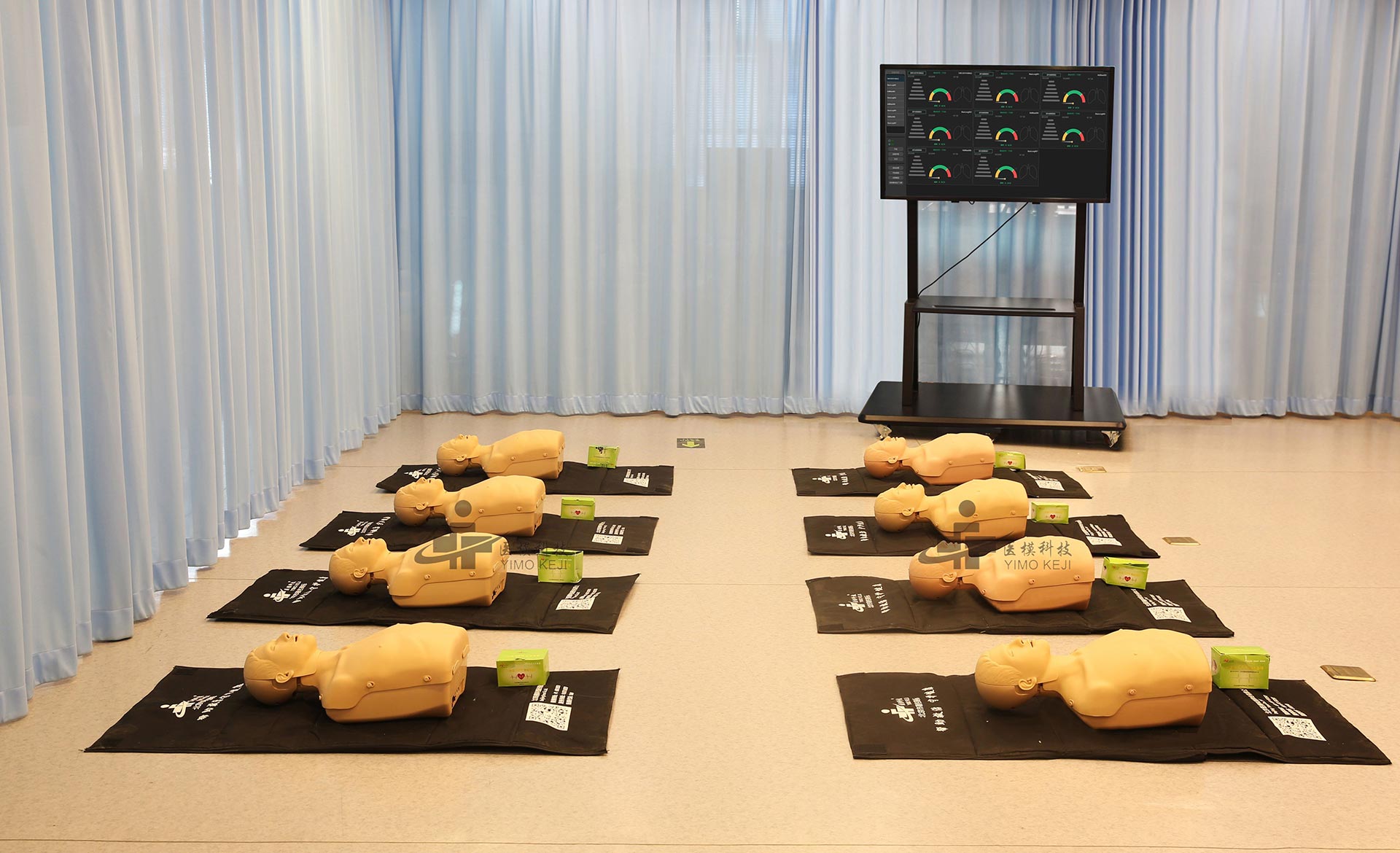 本产品主要用于心肺复苏的集体教学、培训、考核,适合学校、医院、企事业单位、各类培训机构等使用,可同时采集、分析多套半身心肺复苏模拟人的数据,模拟人具备声光反馈系统,能很好地满足群体化训练考核要求。使用时无需布线,不受场地限制,操作方便,使用灵活。模拟人亦可单独使用。