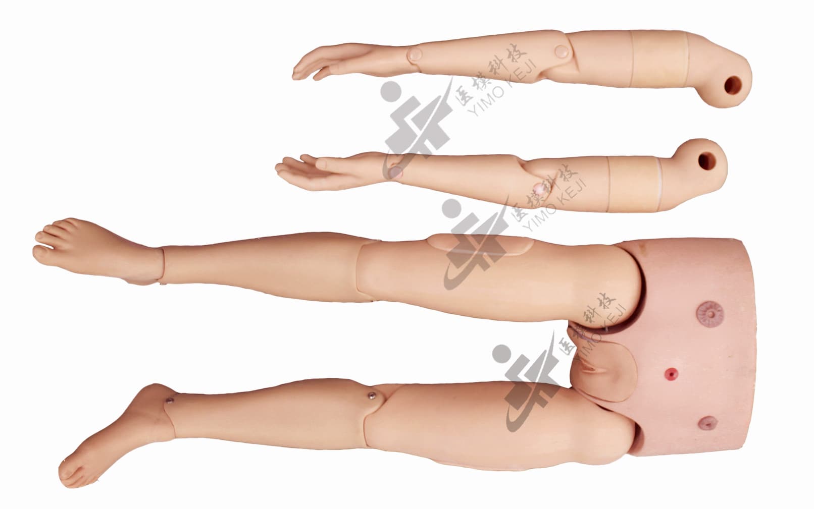 本系列产品可直接与成人心肺复苏模拟人进行组装更换,包括关节灵活的四肢、血压测量手臂、静脉穿刺手臂、创伤四肢等可供选择。